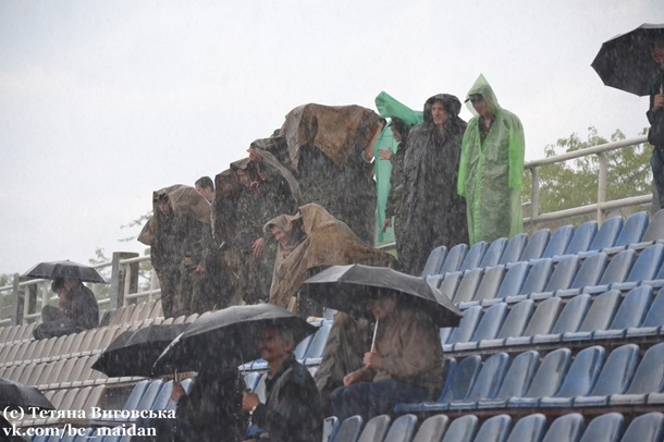 Поки вилучений гравець рвав на своїй короткостриженій голові волосся і чалапав у роздягальню, небо розверзлося і звідти полив справжній тропічний ливень. Покарного наче водою змило з бігових доріжок, а от вболівальники не покинули своїх місць і дочекалися фінального свистка. Вони були винагороджені прекрасним перформансом, який поєднав гравців і глядачів. Зенітники "зарядили" патріотичні вітання "Слава Україні", на що і футболісти і вболівальники гуртом відгукнулися "Героям - слава!". Були ще скандування і не зна що котилося по щоках - дощ чи сльози щастя, адже розумієш, от вона справжня перемога.
